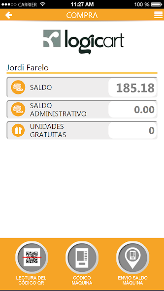 Der Benutzer verfügt über einen Restbetrag für Transaktionen, der direkt eingeführte Geldautomaten oder durch Gebühren für Kreditkarte oder PayPal aufgeladen werden kann.